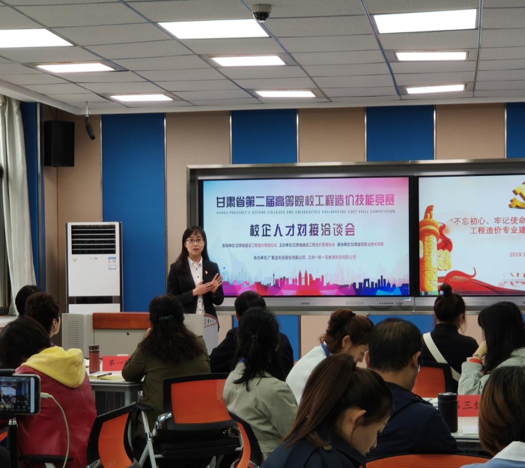 10月13日上午,由甘肃省建设工程造价管理总站指导,甘肃省建设工程造价管理协会主办,甘肃建筑职业技术学院承办,广联达科技股份有限公司、兰州一砖一瓦教育科技有限公司协办的甘肃省第二届高等院校工程造价技能竞赛在我院盛大开幕,本次大赛筹备工作具体由建筑经济管理系负责,以本次大赛为契机,建经系第一党支部组织开展了“不忘初心、牢记使命、产教融合、校企合作”建经系第一党支部开展工程造价专业建设及企业需求研讨会,共有来自我省的18家造价行业企业和我省9家建筑类高校参与了本次研讨会。