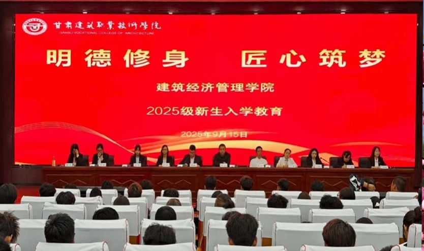 9月15日上午9时,甘肃建筑职业技术学院建筑经济管理学院2025级新生入学教育在餐厅4楼多功能厅正式拉开帷幕。学院党总支书记李乐,院长梁怡,副院长殷会斌,学院各专业教师、学院办公室干事王玉娇、张静出席本次大会。